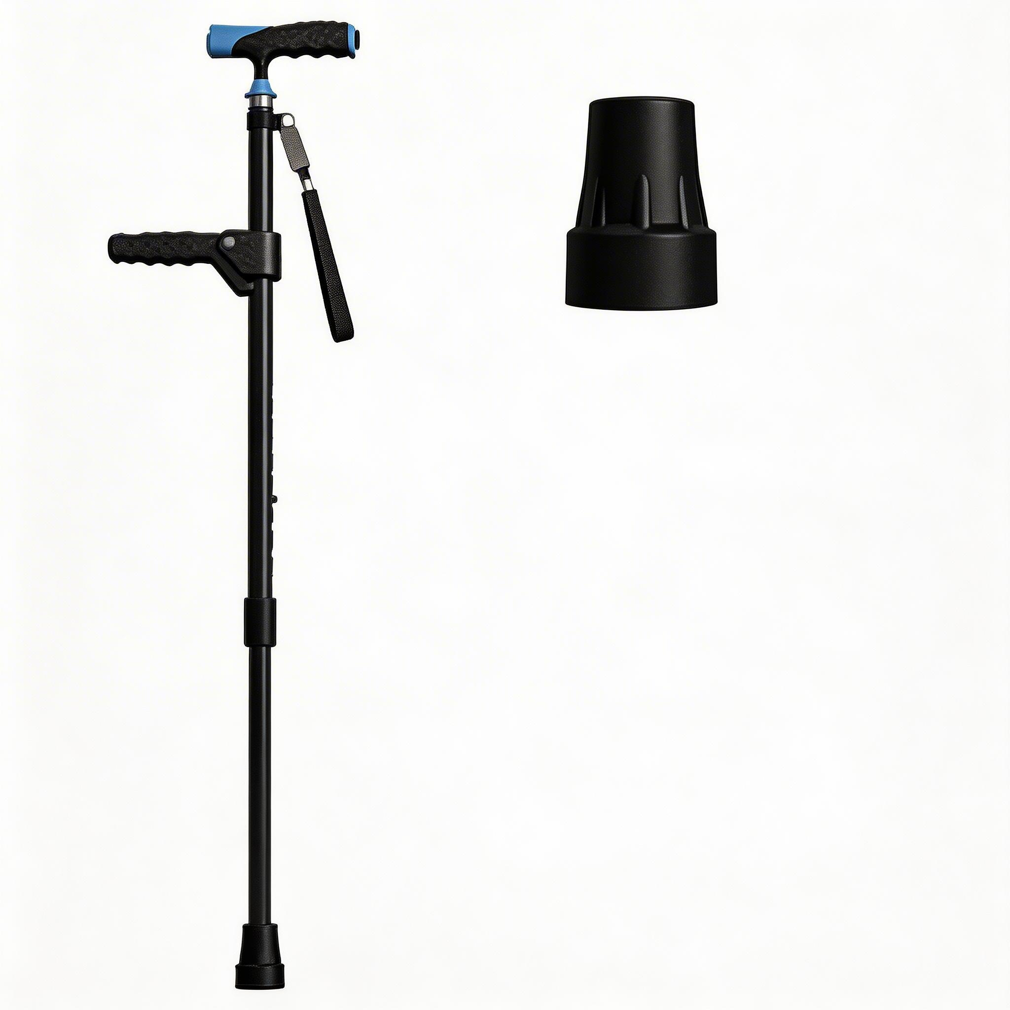تحتوي وسادة القدم السميكة المصنوعة من المطاط اللدن حراريًا على لوحة حديدية داخلية لمنع التآكل والاختراق. وهذا يضمن أن العصا القابلة للطي تحافظ على اتصال ممتاز بالأرض ومقاومة للانزلاق، مما يوفر قاعدة دعم ثابتة وواثقة على الأسطح المختلفة.