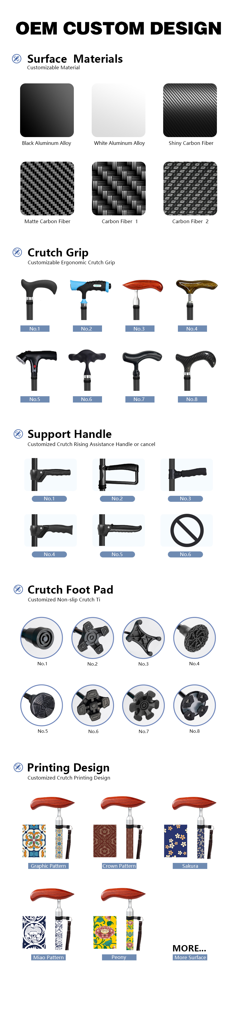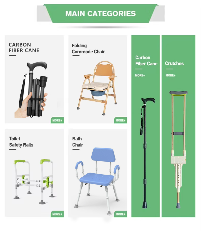 تشتمل سلسلة مساعدات التنقل لكبار السن لدينا على ثلاثة منتجات متخصصة: عكازات إعادة التأهيل لكبار السن، والعكازات متعددة الوظائف، والعكازات المصنوعة من ألياف الكربون خفيفة الوزن. تتميز عصا المشي المصنوعة من ألياف الكربون بتصميم عملي قابل للطي، وتوفر دعمًا محمولاً وقويًا. تم تصميم كل منتج لتوفير الراحة والسلامة والقدرة على التكيف أثناء المشي اليومي أو التعافي أو السفر.