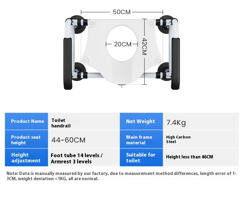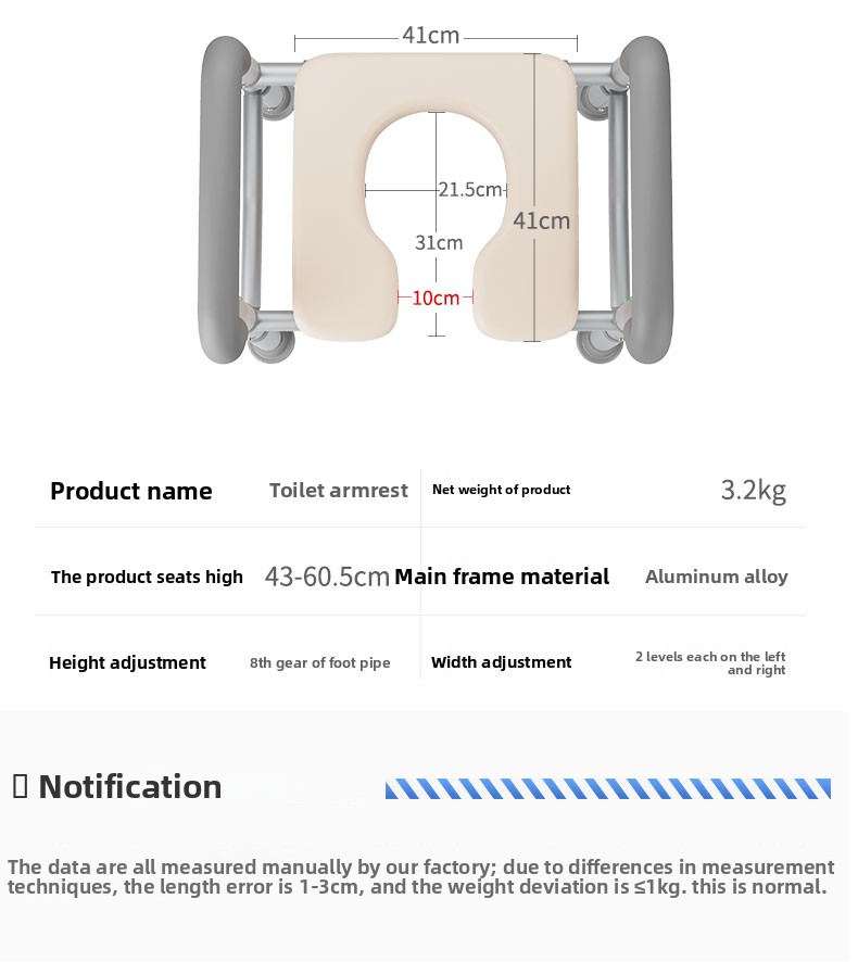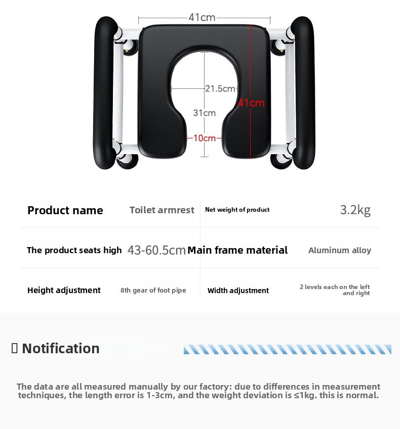 يزن حامل مقعد المرحاض هذا لكبار السن 4 كجم فقط، وهو متين وقابل للحمل، مما يسمح بتغيير موضعه بسهولة وتركيب بدون أدوات في أي إعداد حمام.